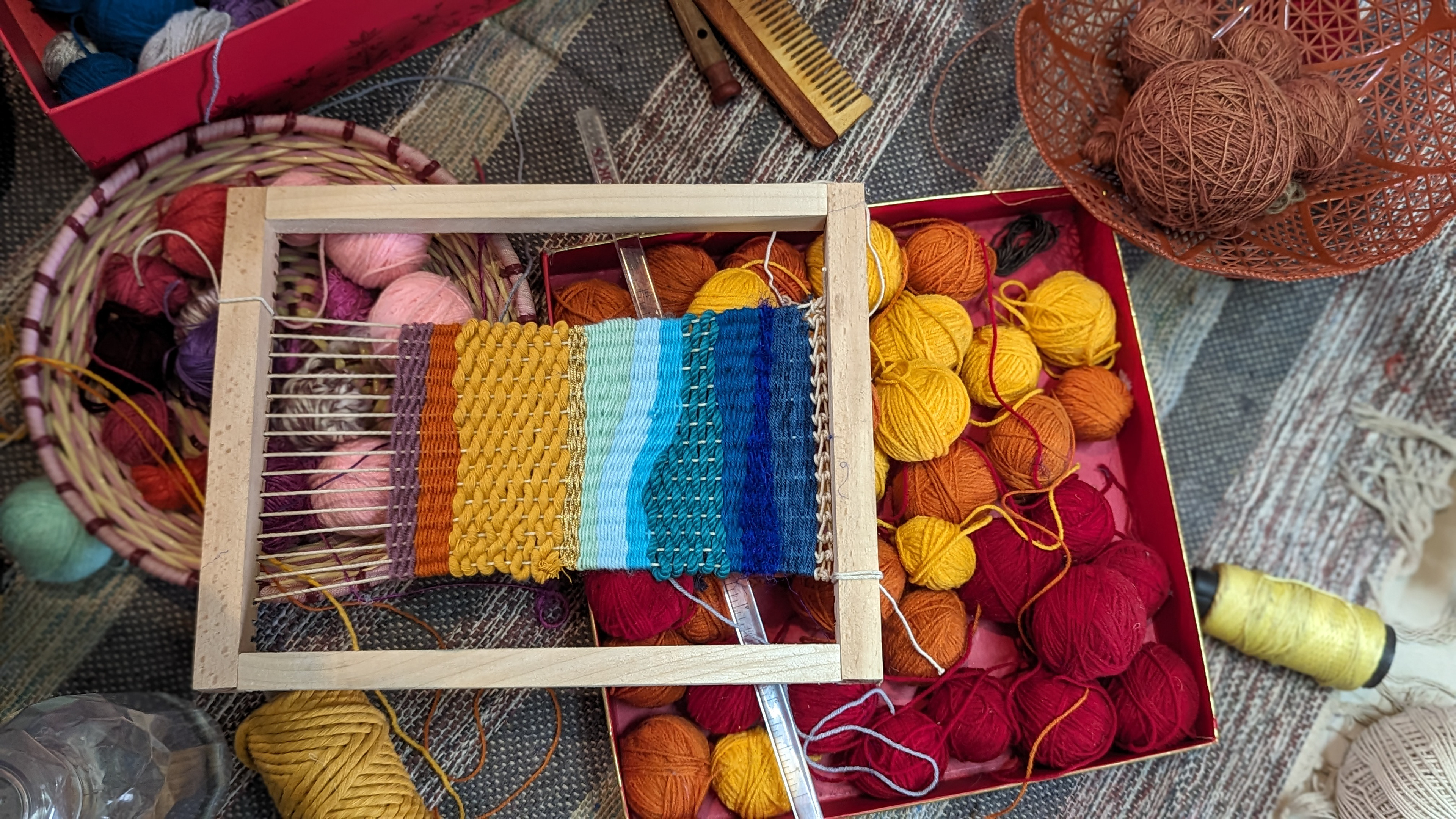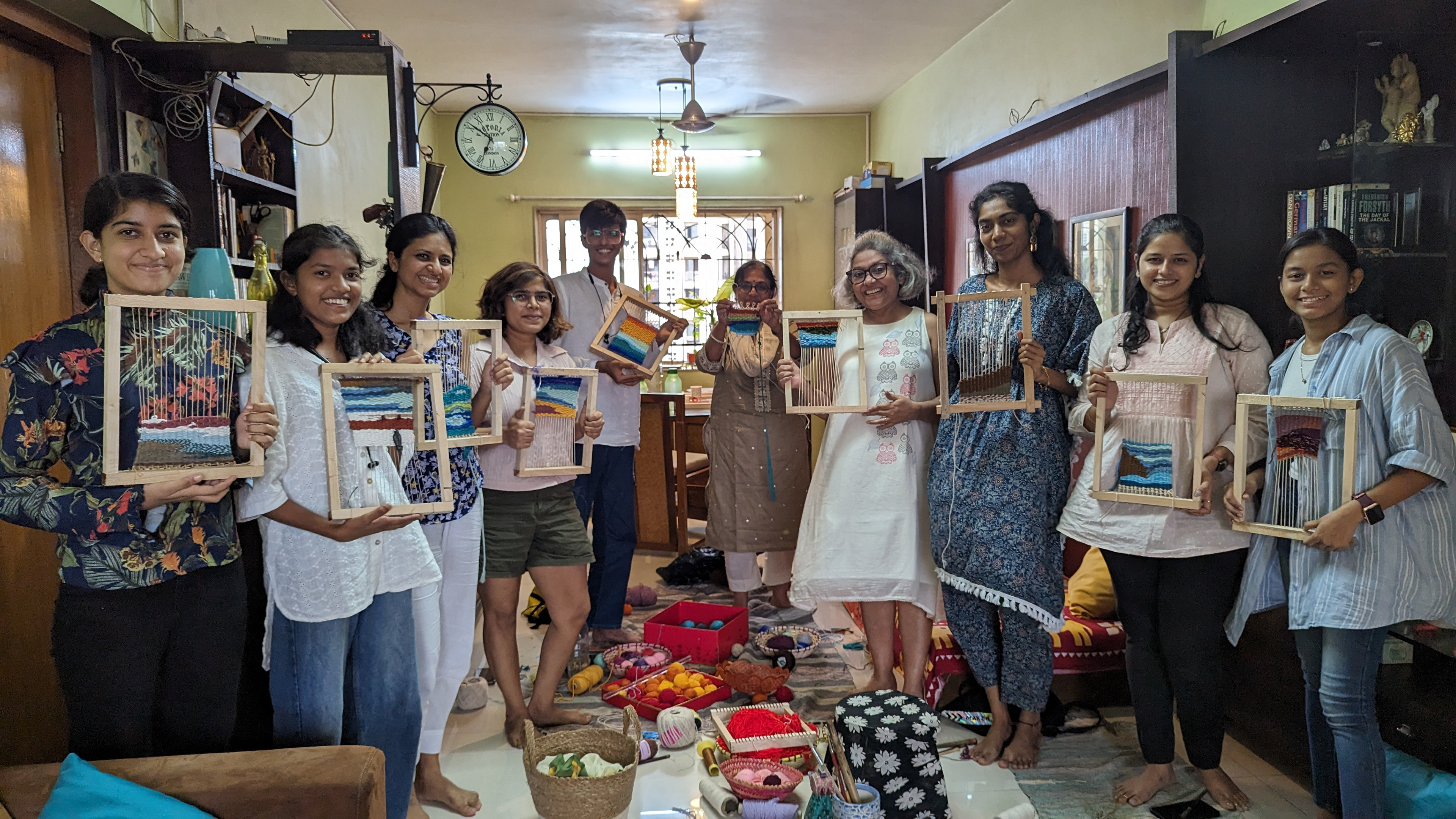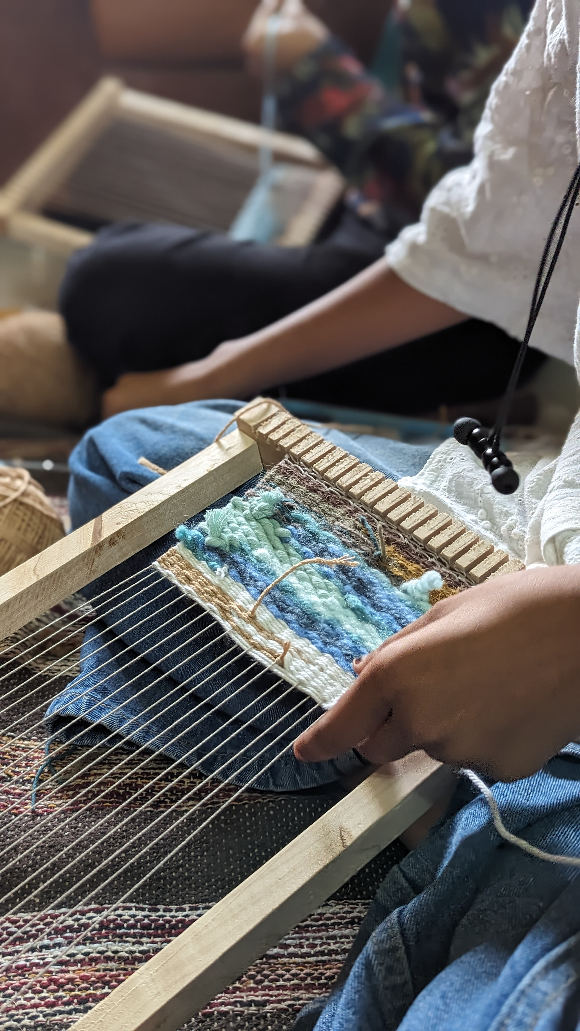 On a rainy day, we immersed ourselves into hand weaving with the rustic shades of land and serene shades of water, exploring the structured and free flowing forms of weaving a Tapestry.